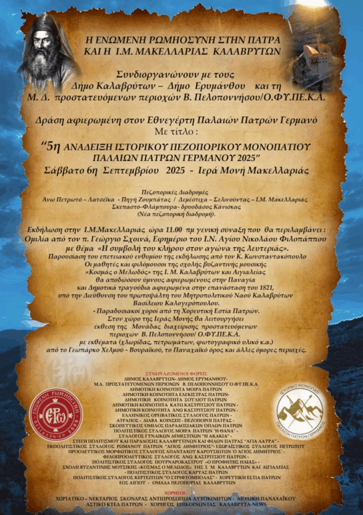 Εκδήλωση “5η Ανάδειξη Ιστορικού Πεζοπορικού Μονοπατιού Παλαιών Πατρών Γερμανού 2025”