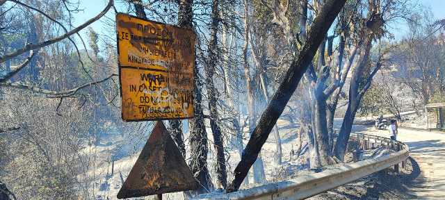 ΝΕΟΤΕΡΗ ΕΝΗΜΕΡΩΣΗ Συνεχείς αναζωπυρώσεις στις διάσπαρτες εστίες της φωτιάς. Τραυματίστηκε πυροσβέστης, ο οποίος μεταφέρθηκε στο Νοσοκομείο με ασθενοφόρο του ΕΚΑΒ.